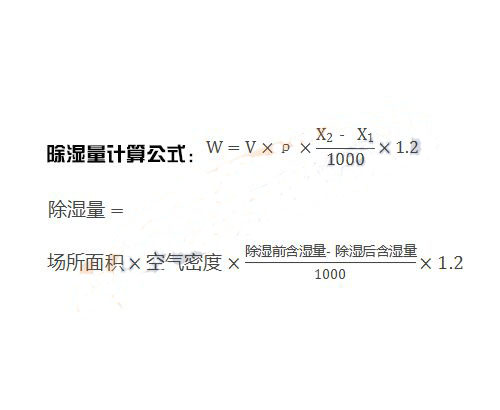 除濕量=場(chǎng)所體積×空氣密度×(除濕前含濕量-除濕后含濕量)/1000×1.2