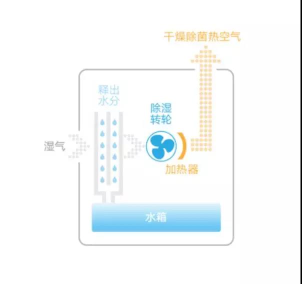 除濕機(jī)啟動(dòng)后會(huì)主動(dòng)吸入潮濕的空氣,然后把空氣加熱至150℃,使得空氣中的水分都變成了水蒸氣。